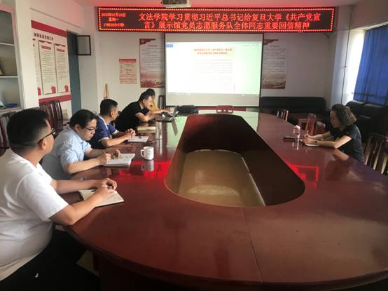 2020720日,文法公司党总支在公司党员活动室学习贯彻了习近平总书记给复旦大学《共产党宣言》展示馆党员志愿服务队全体队员重要回信精神。