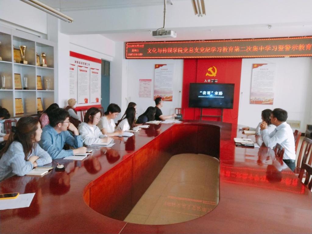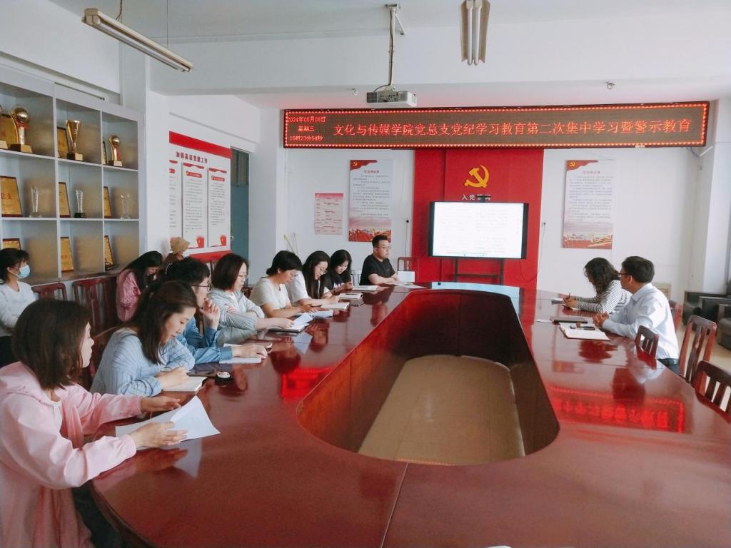 5月8日下午,文化与传媒公司党总支于A10—311开展党纪学习教育第二次集中学习暨警示教育。党总支书记杨延杰主持会议,公司全体党员教师参会。