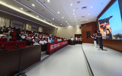 第二站,在红旗渠纪念馆报告厅,广播电视编导同播音与主持艺术专业的同学们为数百名游客演出话剧《水来了》与朗诵《红旗渠赞》。通过精湛的表演,生动再现了修渠人前赴后继的壮举;播音学子声情并茂的朗诵,激昂诠释了建设者战天斗地的豪情。