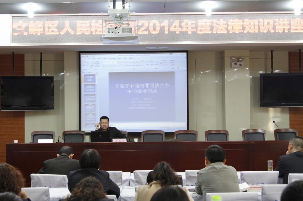 2014年4月3日下午,公司蔡淮涛博士应文峰区检察院的邀请,为该院作了一场题为《诈骗罪与盗窃罪司法实务中的疑难问题》的讲座。讲座历时两个半小时,蔡淮涛老师由实践案例入手,分析了两罪的犯罪构成、在实践中容易混淆的疑难问题及在理论上的争议。讲座结束后,就有关司法实践中的问题进行了学术探讨,为司法实践提供了有力的理论指导。