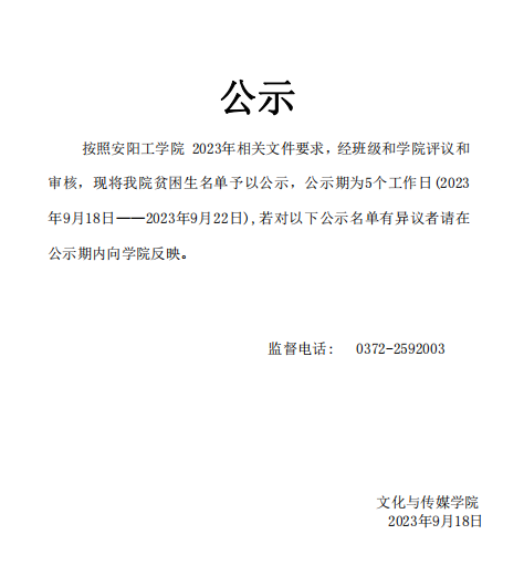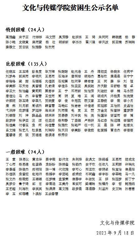 文化与传媒公司贫困生公示名单